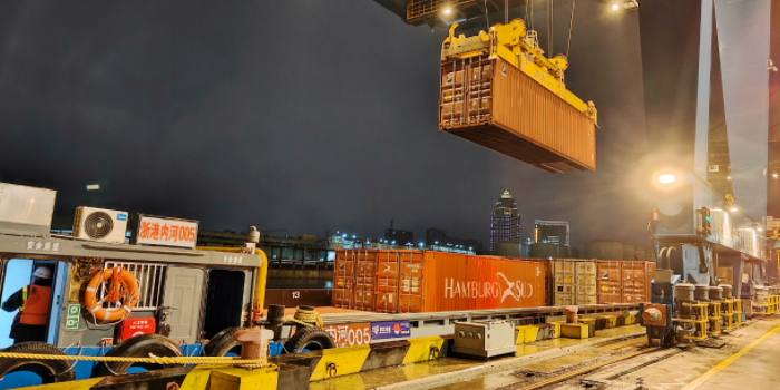 嘉興港到德清港海河聯運集裝箱新航線開通