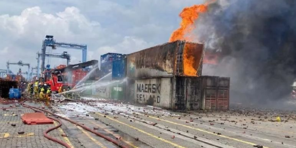馬來西亞最大集裝箱港口巴生港突發(fā)大火,消防人員于當日晚撲滅8個貨柜的火勢,翌日早上繼續(xù)展開滅火行動,將其余6個貨柜的火勢全部撲滅。目前正處于“修復”階段,巴生西港已執(zhí)行隔離貨柜程序,并由消防局監(jiān)控。消防局的初步調查指出,這些貨柜裝有的物品包括紙、鐵、鋼、松木、礦物材料、鋁和洗衣機。失火原因可能與鋰電池有關。
