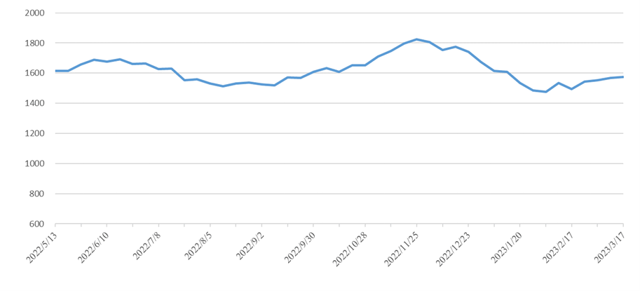 此外,華東區域指數報收1656點,環比下降124點,跌幅6.97%;山東區域指數報收1268點,環比下降81點,跌幅6.00%;福建指數報收1517點,環比上漲91點,漲幅6.38%。