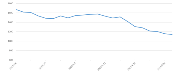 內貿海運市場運量低迷,本期(2023年5月20日至5月26日)中國內貿集裝箱運價指數同比大幅下跌